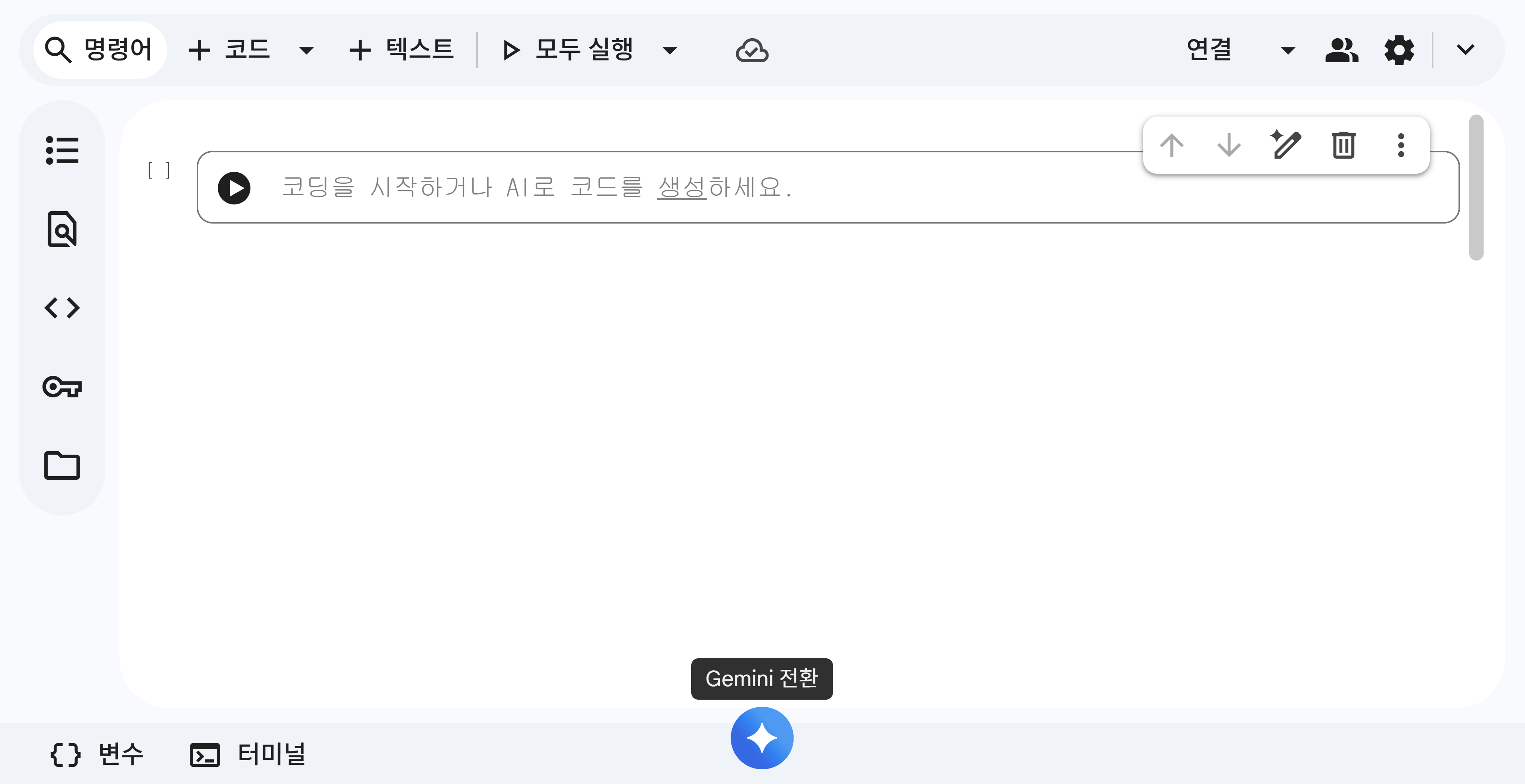 요즘은 아래와 같이 colab 안에서도 gemini를 사용할 수 있기 때문에 colab에서 문제와 풀이를 함께 정리하는 것을 권장합니다.