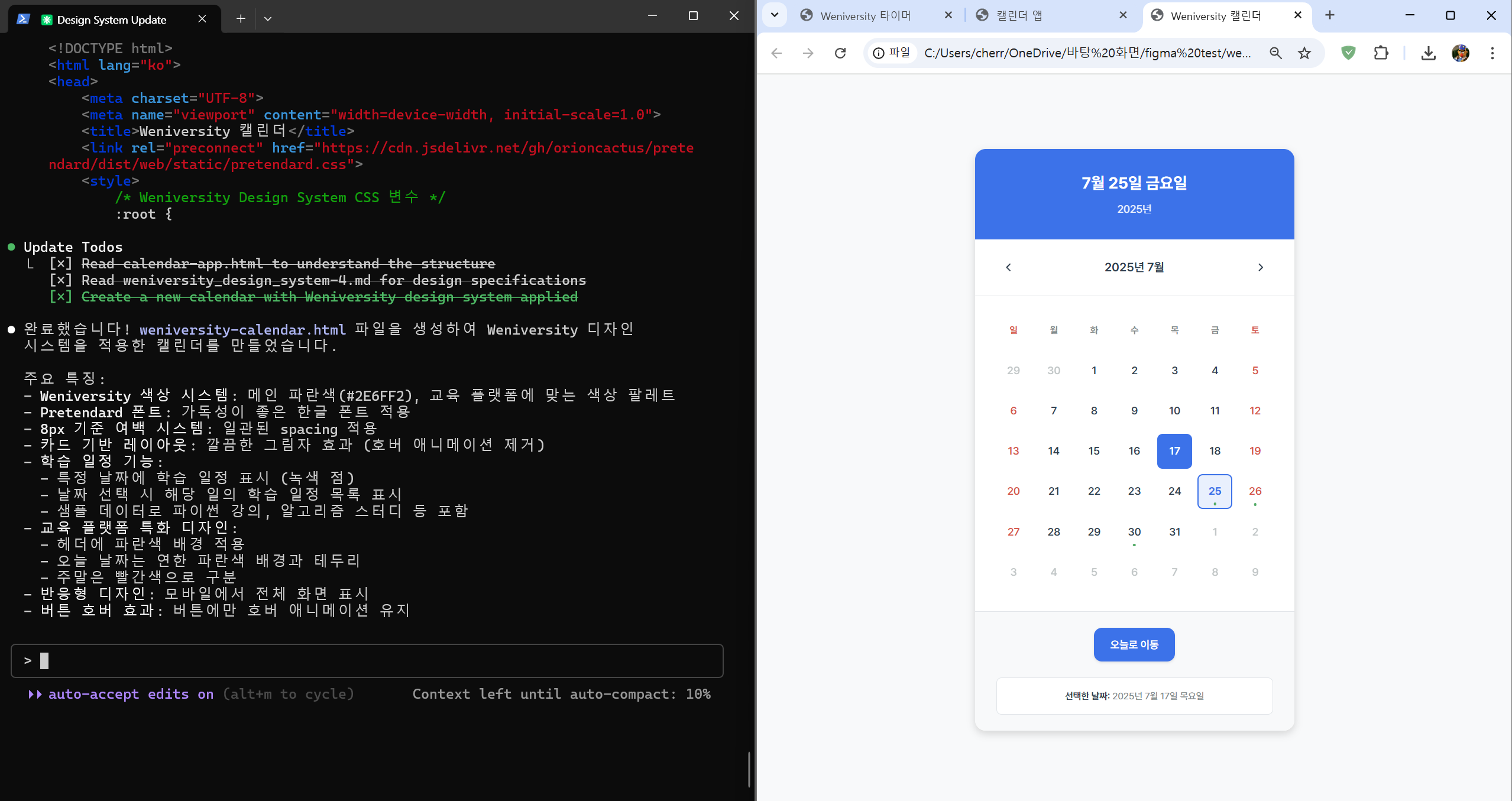 저장한 디자인 시스템을 Claude Code에서 활용합니다.