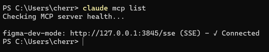 claude mcp listclaude mcp listfigma-dev-mode-mcp가 나타나면 성공적으로 추가된 것입니다.