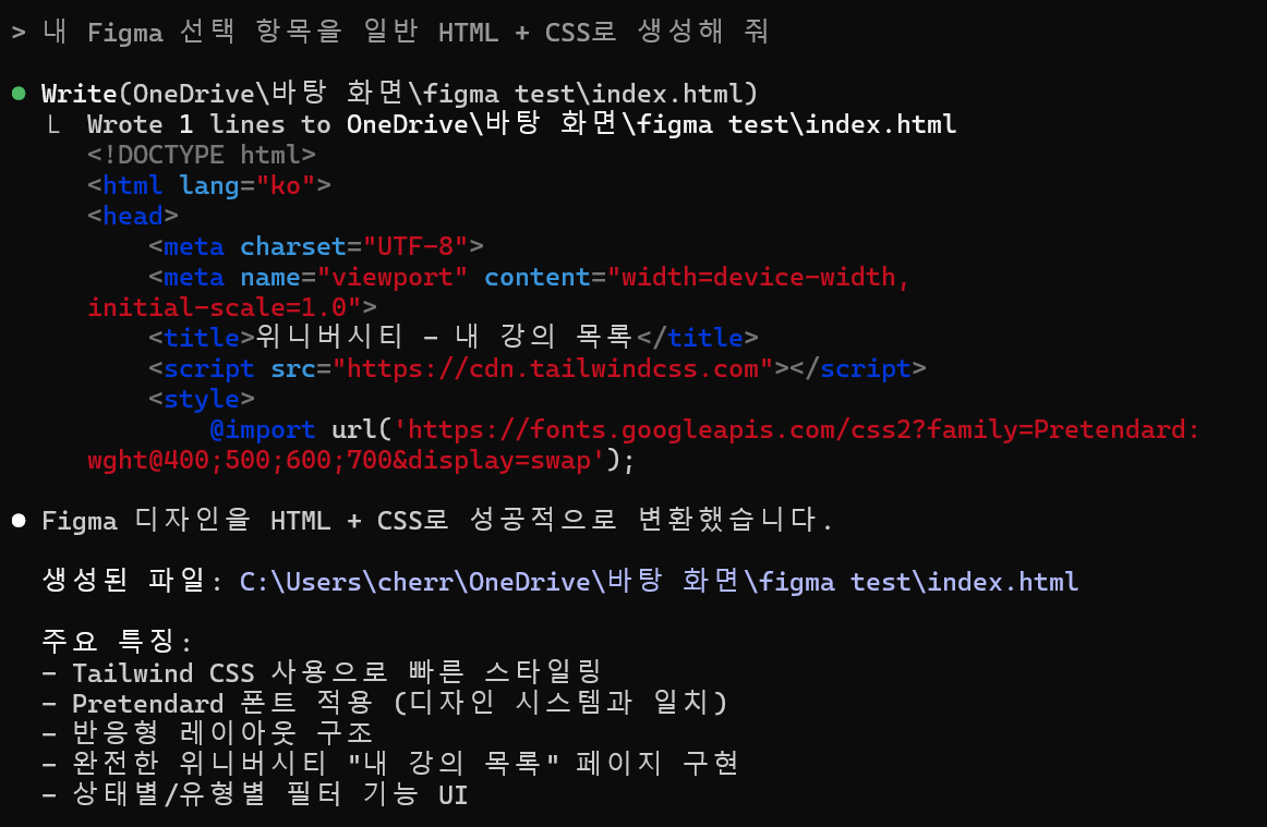 Figma MCP를 활용하면 내 디자인을 빠르게 HTML, CSS 코드로 변환할 수 있습니다. (Figma 유료 구독 필요)