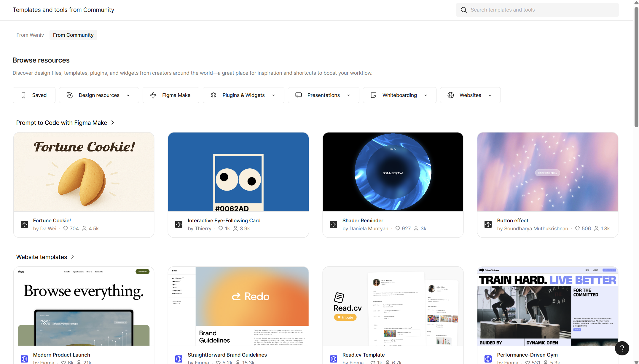 Figma Community에서 수많은 무료 템플릿과 디자인 시스템을 찾을 수 있습니다. 이걸 레퍼런스로 활용하세요.