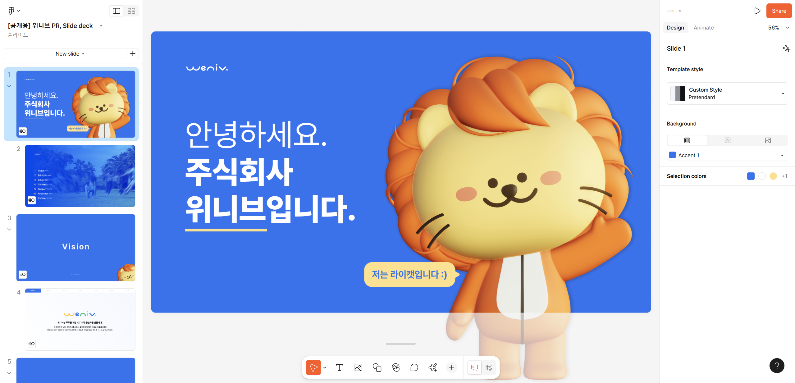 발표 자료를 만들 수 있는 툴입니다. 파워포인트처럼 활용할 수 있으며, 피그마 디자인 에셋을 바로 가져와 쓸 수 있어 편리합니다. 웹 기반으로 브라우저에서 바로 공유할 수 있다는 장점이 있습니다.